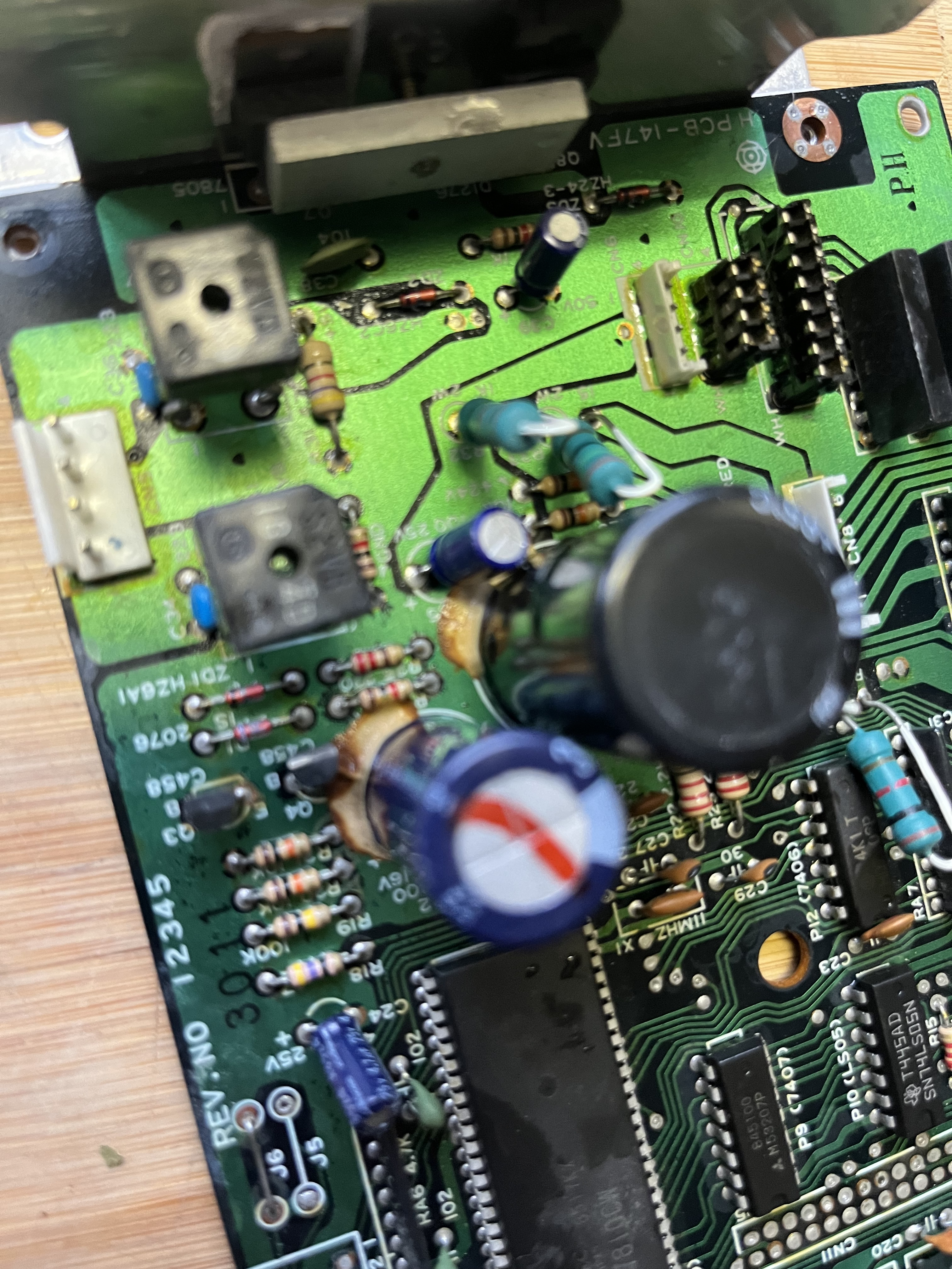 J'ai démonté l'imprimante et retiré le circuit imprimé..... il y a 2 grosses traces jaunâtres au pied des 2 condensateurs, question pour les praticiens, c'est bon ou pas ces coulures? Il n'y a pas de circuit à proximité.